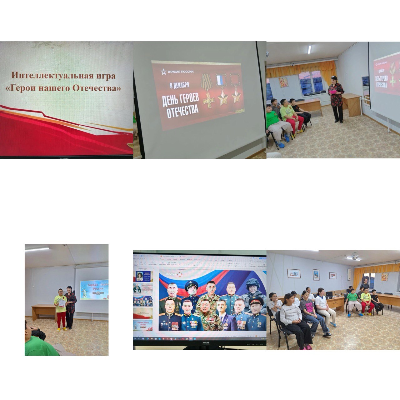 Сегодня по плану дня «Героя Отечества», для воспитанников первого и второго стационарного отделений организована интеллектуальная игра «Герои нашего Отечества». Ребята смогли продемонстрировать свои знания и узнать новые исторические факты. Игра состояла из нескольких туров: «Назовите героя», «Былинные герои», «Города - герои» и «Кто сказал фразу». За каждый правильный ответ они получали звёздочки. По итогам игры победителем стал Иванов Виталий, ученик 7 класса Кангаласской СОШ Нюрбинского района. Игра получилась увлекательной, интересной и познавательной.